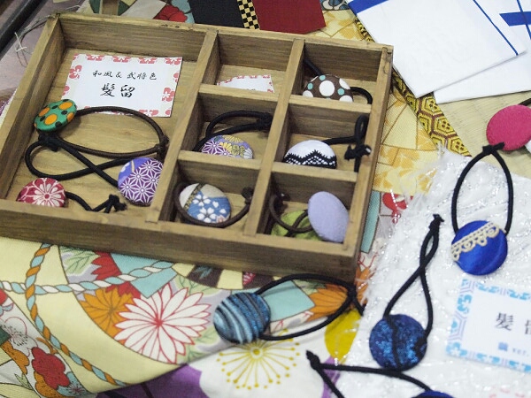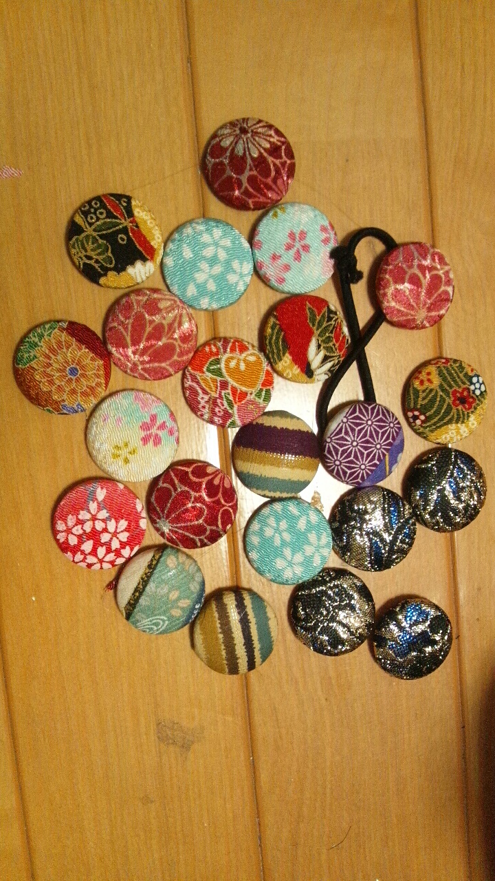 部屋の片付けをしていて、布を色々発掘したので髪留用のくるみボタンにしてみました。